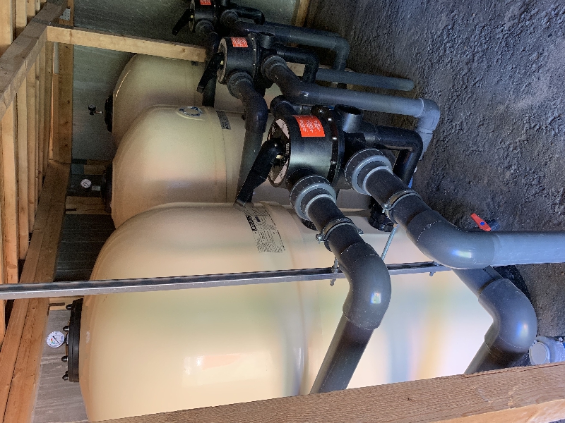 Rekonstrukce filtračního systému bazénu byla provedena nahrazením 3 ks nových sklolaminátových filtrů za původní staré železné, které již nesplňovaly limity pro kvalitní filtraci bazénové vody. Společně s výměnou filtrů byla také provedena výměna armatur cirkulačního okruhu. Zajistí se tak vyšší filtrační výkon a lepší cirkulace bazénové vody. Výměna byla poměrně časove náročná, ale vše proběhlo ke spokojenosti zákazníka a zahájení koupací sezony proběhlo ještě koncem června.