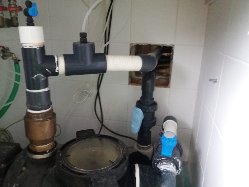 Úprava a modrnizace rozvodu vody, začlenění automatické regulace množství chloru do technologického systému.